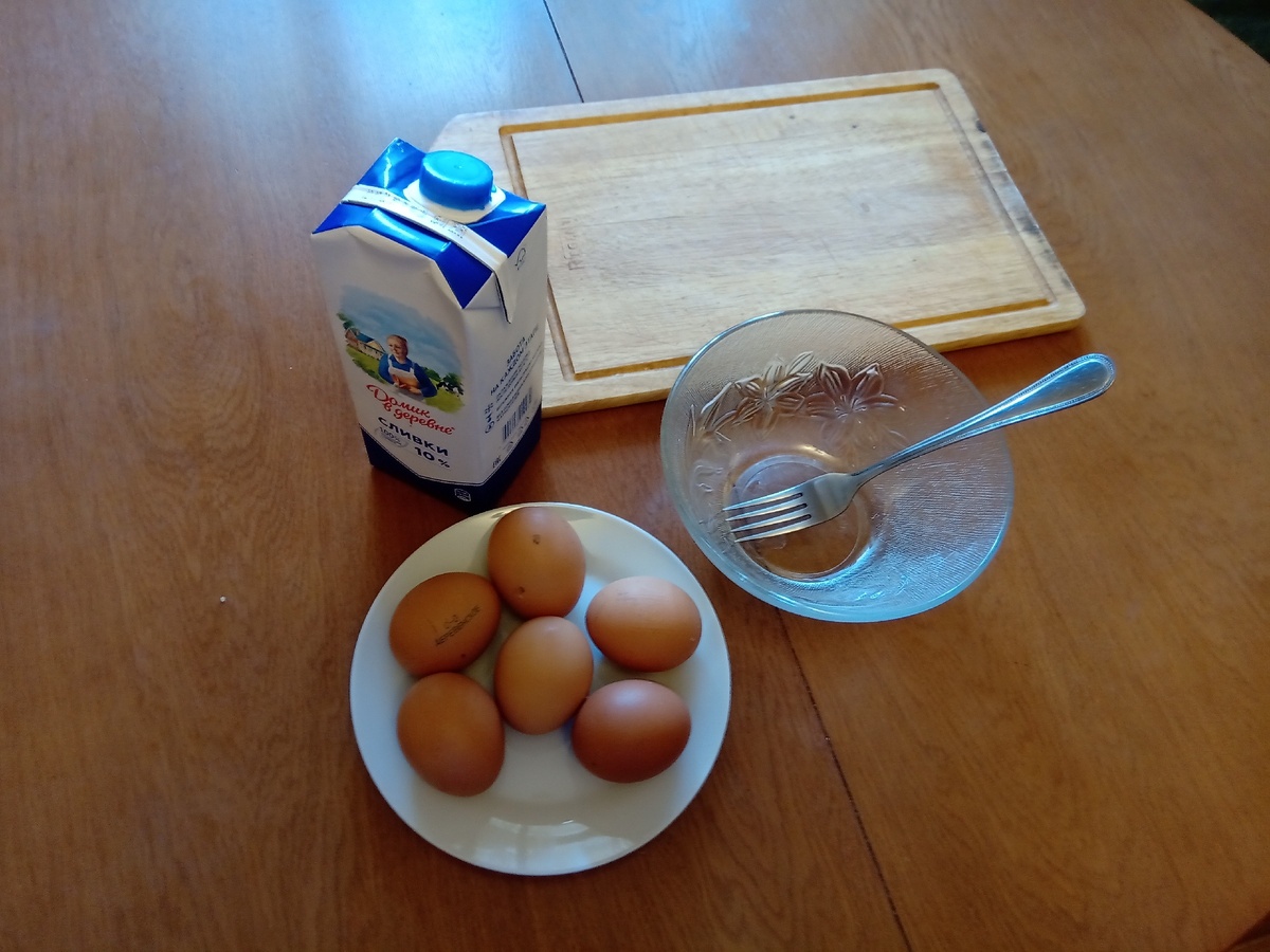 С чего начнем? Возьмём 6 яиц и немного сливок. Отделяем белки от желтков. Наливаем в желтки немного сливок. Перемешиваем и добавляем соль по вкусу. В холодильнике нашлась зелень. Добавлю её в желтки. Лишним не будет! Тем более клетчатка тоже нужна. Возьмём лук и нашинкуем его. Лук придаст омлету сочность и сладковатый вкус. После выложим на сковороду и обжарим. ( Масло не забудьте) Когда он немного подрумянился, выключим газ и займёмся белками. Белки нам нужно будет взбивать миксером до состояния похожего на пену. Далее мы выливаем желтки в сковороду с луком и ждём 2-3 минуты до образования корочки. Далее сверху кладём пенообразный белок. Равномерно разравниваем! Накрываем крышкой и ждём. На тихом огне я ждал примерно 5 минут. Выкладываем омлет на доску. Обязательно даём немного отдохнуть! После складываем наш омлет пополам. Разрезаем на порции и всё! А вот такой воздушный он внутри! Если у нас с братом, которому 9 лет, а мне 14 получилось, то и у вас непременно получиться! Приятн