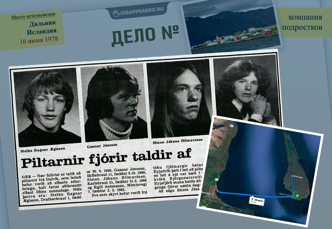 Поиски перенесли в деревню Дальвик. Но и здесь ничего нового не нашли. Никто, кроме полицейского, не видел парней в то утро ни в гавани, ни где-то еще. Они будто вышли за двери своих домой и растворились в воздухе.