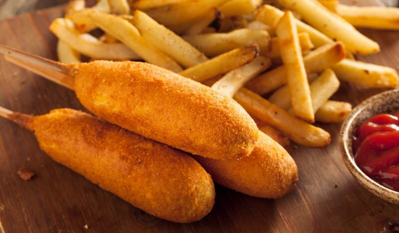 Корн-дог — это аналог сосиски в тесте или хот-дога. Корн-доги хороши как горячими, так и холодными.