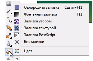 Фонтанную заливку Вы можете выбрать в диалоговом окне из списка инструмента – заливка или на клавишу быстрого доступа F11.