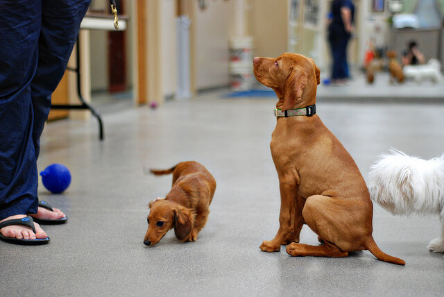 Для этой игры, возможно, потребуется помощник. Посадите собаку на растоянии двух метров от себя и