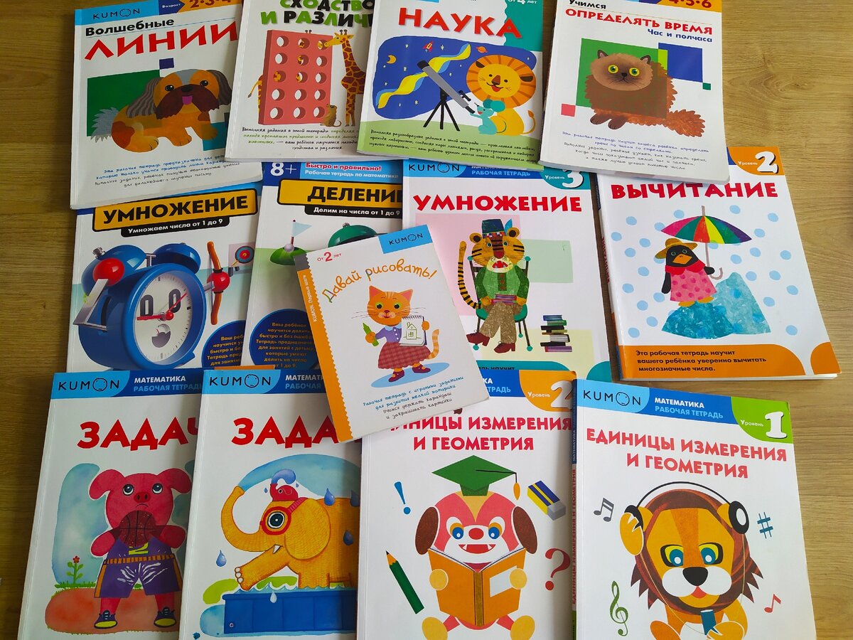 Наши развивающие пособия С детьми мы занимаемся. Многие видя огромное количество развивающих тетрадей думают, что мои дети решают их сутками. Но это не так. Занимаемся мы даже не каждый день, а по настроению. А большое количество даёт нам выбор. Ведь один раз хочется делать что-то одно, а в другой раз совершенно другое. Да и дети любят разные издания, Тимур обожает Kumon от издательства Манн Иванов Фербер, а Вирсавия любит Gakken и так далее. Ниже покажу часть наших особо любимых пособий. 1. Kumon. Как уже было написано выше, их любит наш старший сын - Тимур. Мне тоже нравятся эти тетради, за последовательность и постепенное усложнение. Ребенок без напряга для самого себя учится делать все лучше и лучше определенный из навыков, будь то решение задач или, например, умножение. Минус - цена, но если покупать со скидкой, то и это уже не минус. 2. Gakken. Это больше творческие тетради с уклон на развитие одного из навыков. Их очень любит наша дочка