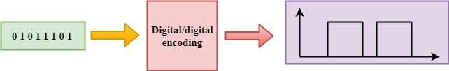 Цифро-цифровое кодирование - это представление цифровой информации цифровым сигналом. Когда двоичные 1 и 0, генерируемые компьютером, преобразуются в последовательность импульсов напряжения, которые могут распространяться по проводам, этот процесс называется цифро-цифровым кодированием.