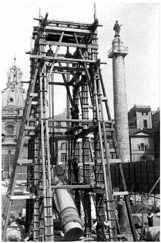 "Как показывают изследования Николы Навоне (Nicola Navone's), машины и техника, изпользованные архитектором Тичино Антонио Адамини в августе 1832 года для возведения Александровской колонны на площади Зимнего дворца в Санкт-Петербурге, были поразительно похожи на те, что изпользовались Мадерно и Фонтана (Maderno and Fontana). Последняя технология (процедура), которая, вопреки Римскому контексту, имела в своем распоряжении почти неограниченную рабочую силу и строительную древесину, приобрела технический и эмпирический оттенок, который противостоял всем процедурам, разработанным в те промежуточные годы политехническими инженерами (Navone 2003)"