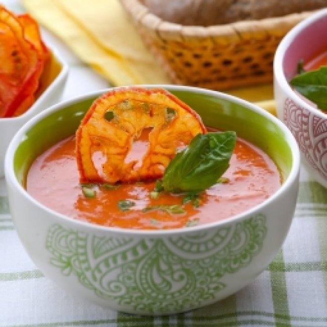 Необычный рецепт.Томатный суп-пюре с чипсами из помидоров.
