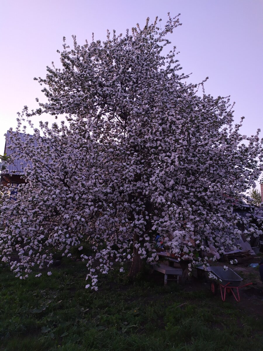 Просто, ради релакса)))) Жаль, что нет фото, передаю его аромат!!!!! Эта яблонька-настоящий долгожитель, не могу сказать точно, сколько ей лет, но что больше лет 25,это точно!!! В этот дом моя семья переехала в далеком 2000 году (6 мая), и яблоня уже была огромным деревом. Чего только с ней не происходила, что она только не переживала: грады, морозы, снега, ураганы... Но до сих пор радует нас своими маленькими сладкими яблочками.... Знаете, я порой думаю, и люди ведь есть такие же... С виду не "культурных " пород, простые, но сколько в их дуге доброты и тепла... Они безвозмездно дарят их окружающим, как это дерево свои яблоки... Полюбуйтесь вместе со мной))) Она такая необъятная, что даже пришлось отойти метров на 5,чтобы она вся в кадр вошла!) Цветущие сады-это прелесть! Делитесь в комментариях своими фотографиями цветущих деревьев, запустим ленту цветов!))))))