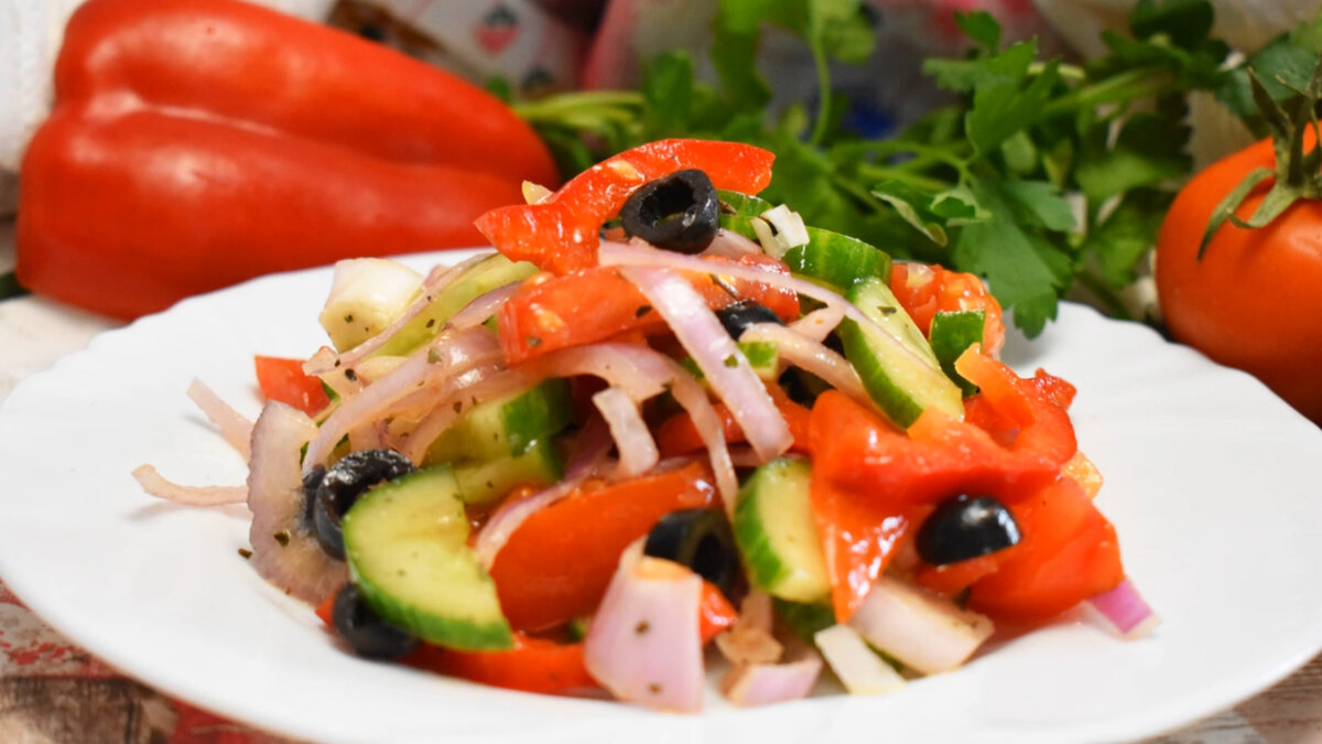 Весна и лето это отличное время для легких салатиков, салатиков из овощей. Хочу поделиться с Вами рецептом своего любимого салатика "Греческий салат". Рецепт очень простой, готовиться с добавлением итальянских трав и в идеале оливкового масла, но если нет его можно добавить и растительное. Да, в оригинале он готовится с сыром фета, но так как я его не особо люблю то я не добавляю, но если Вы любите его то дерзайте, нарежьте фету кубиком и добавьте.