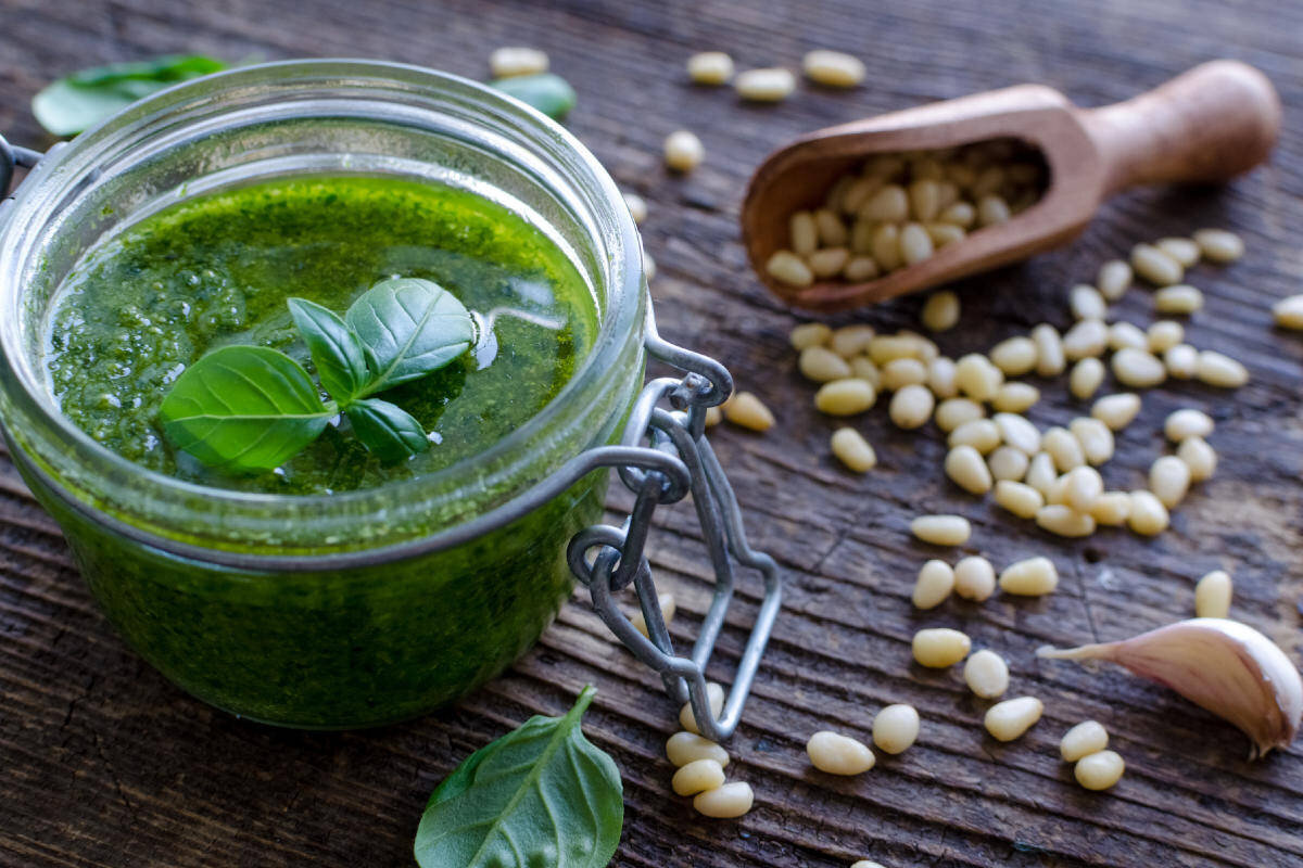 Знаменитый итальянский соус песто покорил сердца миллионов людей. И моё в том числе. Его можно есть со всем и это божественный вкус! С макаронами, пицца, суп-пюре, мясные блюда и др. А если просто намазать на кусок хлеба и откусить, то можно почувствовать "взрыв благодарности" от вкусовых рецепторов! Интересная история возникновения соуса. Итальянские крестьяне из базилика и оливкового масла делали мазь для моряков от экземы. И вот однажды, случайно данная смесь была пролита на кусок хлеба. Люди попробовали и стали использовать в пищу. И сегодня итальянцы свои традиции чтят: на всех праздничных столах присутствует песто. Для песто нам понадобится: Подготовить ингредиенты: Листья базилика помыть, обсушить. Зелень и чеснок порубить. Сыр натереть на мелкой терке. Орехи слегка обжарить на сухой сковородке. Базилик вместе с чесноком и солью сложить в блендер. Начинать взбивать и постепенно (во время взбивания) добавлять масло. Добавить орехи, остатки оливкового масло и взбить. Затем до