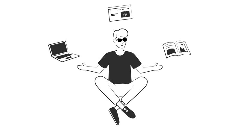 Моё обучение можно разделить на несколько этапов. Я любил рисовать с детства, для себя и на любительском уровне. Ближе к 18 годам я рисовал различные эскизы и изучал базовые уроки рисования, которые потом немного пригодились в иллюстрировании. Меня очень вдохновляли работы цифровых художников в играх, рекламе и поп-культуре, поэтому лет в 16 я взялся за изучение фотошопа. С помощью бесплатных уроков я освоил базу и функции графического редактора, но в какой-то момент не нашёл мотивации продолжать и переключился на другие занятия. Благодаря навыкам работы с графическим редактором, я, сам того не подозревая, был готов к началу изучения веб-дизайна. (Веб-дизайн — это дизайн сайтов, приложений и любых веб-ресурсов) Во время работы над первым проектом я вникал в особенности современной веб-иллюстрации и изучал множество ресурсов для дизайнеров. Я познакомился с различными графическими стилями, техниками, и способами генерации новых идей в дизайне. В результате обучения я понял достаточно