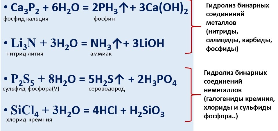 1. Необратимый гидролиз бинарных соединений: