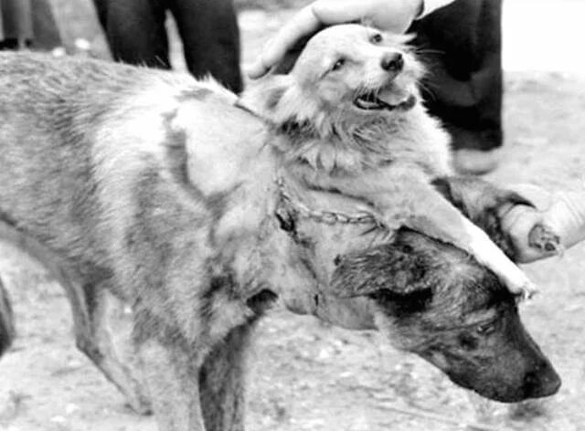 Советский врач Владимир Демихов внес огромный вклад в мир медицины. Но из-за его некоторых радикальных экспериментов, его называли безумным ученым. Дело в том (хотя это может показаться мифом, пропагандой или случаем истории с фотошопом), что в 1950-х годах учёный-экспериментатор фактически создал двуглавую собаку. Еще до создания своей двухголовой собаки Демихов был пионером в трансплантологии — он даже придумал этот термин. После пересадки ряда жизненно важных органов между собаками (его любимые экспериментальные предметы) он, среди многих споров, нацелился на то, чтобы посмотреть, сможет ли он пойти еще дальше: он хотел перенести голову одной собаки на тело другой. Начиная с 1954 года Владимир Демихов и его сотрудники начали выполнять эту операцию 23 раза с разной степенью успеха. 24-й раз, в 1959 году, не был самой успешной попыткой, но он был самым популярным, со статьей и сопутствующими фотографиями в журнале LIFE. Эта собака, таким образом, стала двуглавой собакой, которую запом