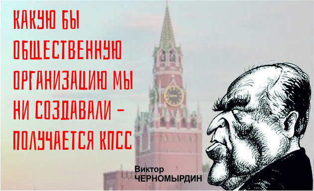 Перевести на английский, конечно, можно. Но получиться либо «Мать Кузьмы», либо потеряется смысл (lost in translation), либо это будет прямолинейный перевод, не искажающий смысл, но во многих случаях лишающий фразу «соли». Начну с политиков, которые приложили не мало усилий для того, чтобы разрушить ту страну, фундамент которой был заложен Лениным. Совсем недавно они обладали властью, управляли страной. Сейчас они уже неактуальны, и, вероятно, были бы сильно разочарованы реалиями сегодняшнего дня. Хотя похоже, что Виктор Черномырдин что-то предвидел… «Какую бы общественную организацию мы ни создавали – получается КПСС». Это он не про идеологию, а про роль в обществе. В этом смысле «Единая Россия» – КПСС наших дней. Черномырдин пробовал создать свою «КПСС». Движение «Наш дом – Россия», возглавляемое им, по замыслу должно было стать «партией власти». Но что-то пошло не так: на своих первых выборах НДР (в Госдуму второго созыва) имела скромный успех – КПРФ получила вдвое больше голосов. П