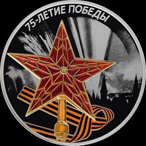 — серебряную номиналом 3 рубля серии «75-летие Победы советского народа в Великой Отечественной войне 1941–1945 гг.»;