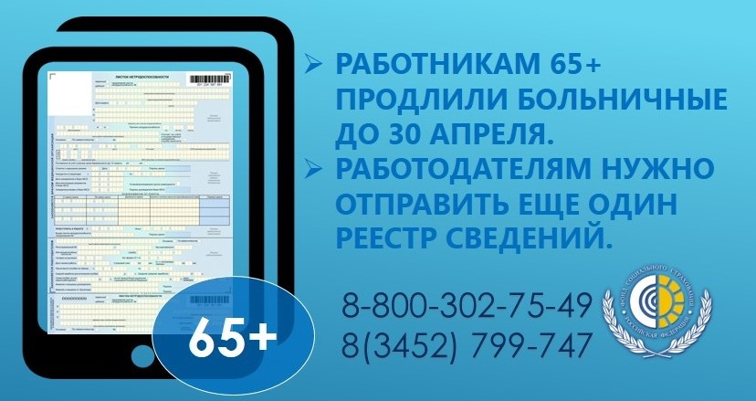 РАБОТНИКАМ 65+ ПРОДЛИЛИ БОЛЬНИЧНЫЕ ДО 30 АПРЕЛЯ. РАБОТОДАТЕЛЯМ НУЖНО ОТПРАВИТЬ ЕЩЕ ОДИН РЕЕСТР СВЕДЕНИЙ.