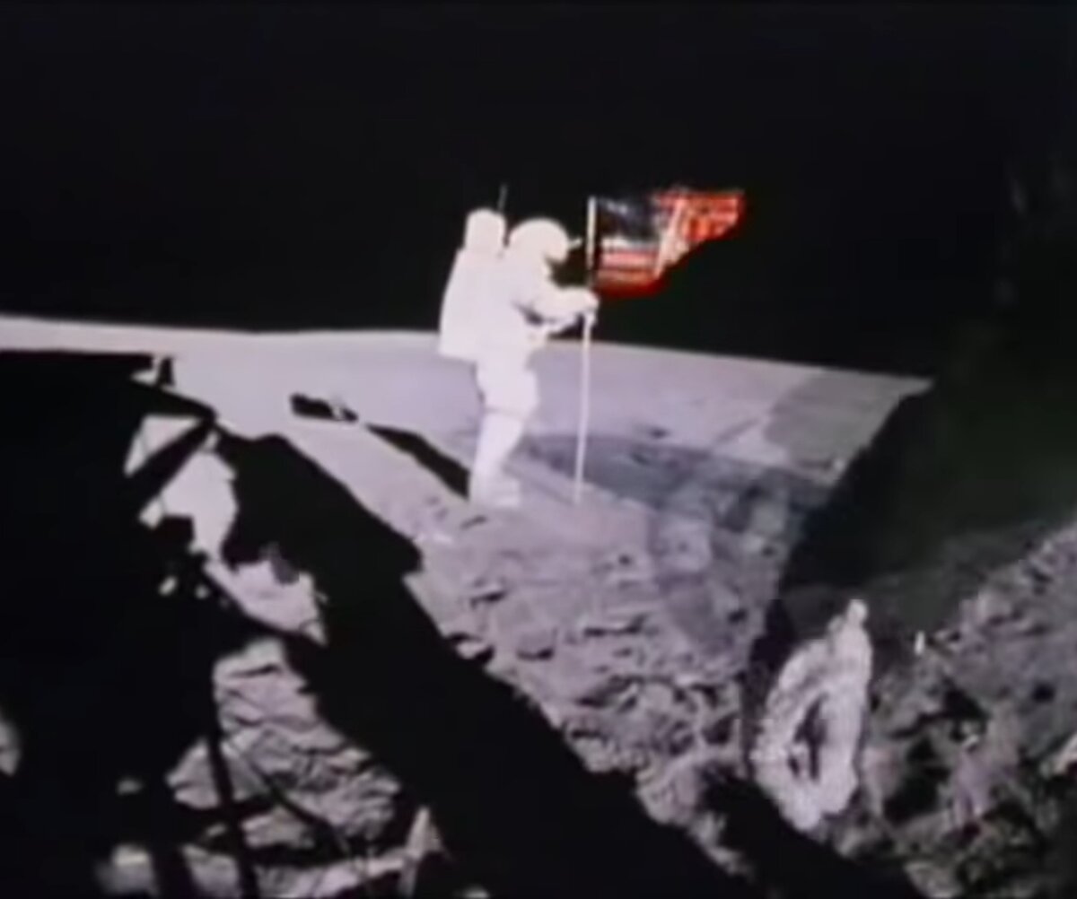 1. Развивающийся флаг, который астронавты установили на поверхности Луны , но на Луне нет атмосферы, а раз нет атмосферы, то и ветра там быть не может. Специалисты объясняют это явление конструкцией флага, при его создании использовали жесткую армированную сетку, она была достаточно упругой . После установки флага , с него сняли чехол , сетка начала деформироваться в условиях слабой гравитации. 2. По скольку Солнце далеко от Луны , то свет от него должен приводить к образованию параллельных теней. Но тени на фотографиях с миссии Аполон-11 не всегда параллельны , поэтому скептики утверждают ,что это тени не от солнца, а от прожектора . 3. Ни на одной фотографии с Луны не заснят прыжок в длину или высоту хотя бы на 1 метр , ведь на Луне ускорение свободного падения в 6 раз меньше чем на Земле , так же отсутствует атмосфера , поэтому в теории астронавты могли прыгнуть в высоту на 2 метра , а в длину примерно на 4. Специалисты объясняют это особенностью строения костюмов, которые не давал