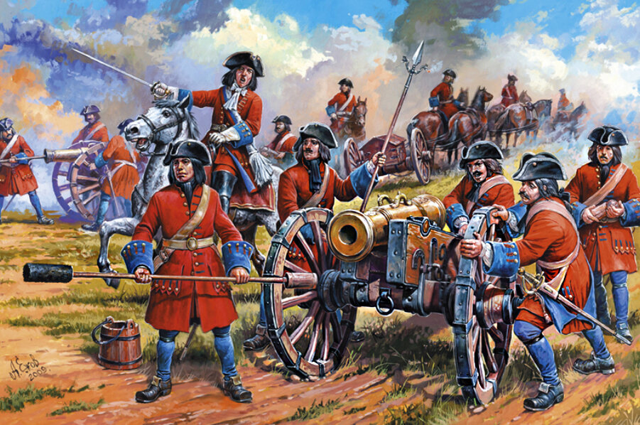 На вооружении полевой артиллерии состояли полевые пушки, полковые пушки, легкие гаубицы. Также русская армия, и только она, имела на вооружении особого рода орудия – единороги, совмещающие качества пушек и гаубиц.