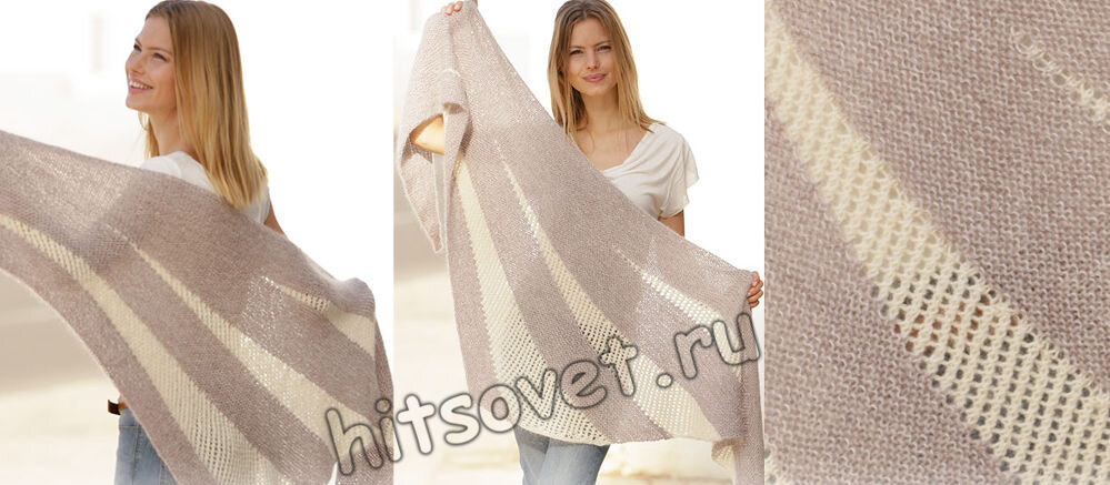 Вязание шали Morning Rays платочной вязкой ажурным узором со схемой и пошаговым бесплатным описанием. Вам потребуется: 200 грамм цвета № 1760, (светло-серо-фиолетовый) и 50 грамм цвет № 0100 (белый) пряжи DROPS BABYALPACA SILK длиной нити 167 метров в 50 граммах, состоящая из 70% альпака, 30% шелка. И 100 грамм цвет № 01 (белый) пряжи DROPS KID-SILK 25 г длиной нити 200 метров в 25 граммах, состоящей из 75% мохера и 25% шелка. Круговые спицы 5,5 мм длиной 80 см. Описание и схемы шали