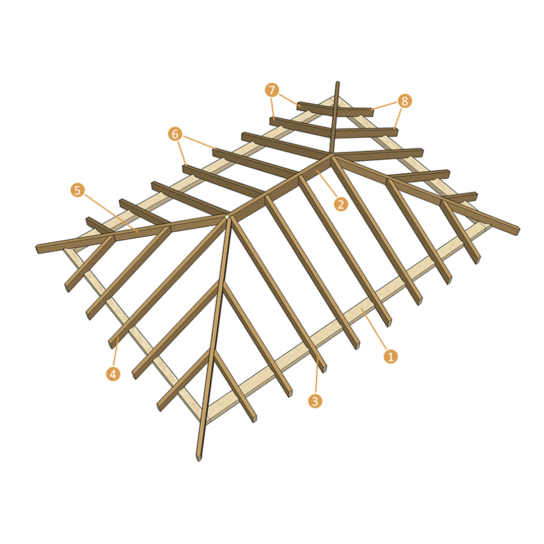 Такая кровля подходит для организации жилого пространства в чердачной части дома. Основные элементы стропильной системы вальмовой крыши. 1. Мауэрлат – деревянный брус, закрепленный по периметру верхнего торца стен дома. Это базовая основа для установки стропильной конструкции.