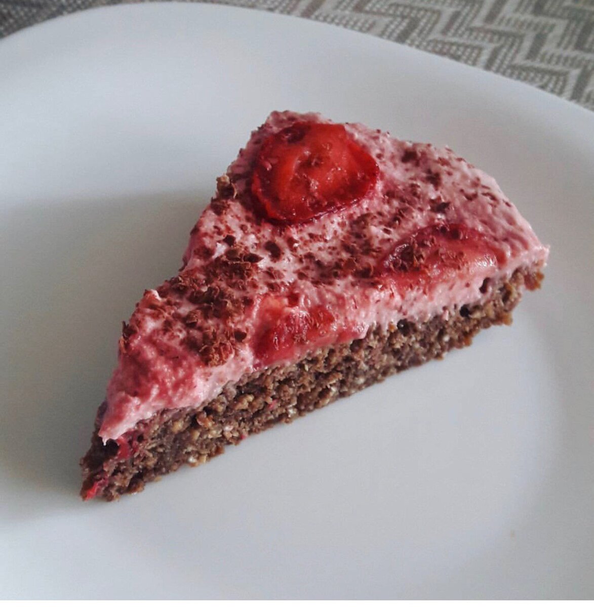 Готовиться он в микроволновке 6-7 минут. Ингредиенты: Тесто: - 3 ст.л грамм творога нежирного — 2 яйца — 2 ст.л. меда (или сах.зам. по вкусу) — 30 мл кофе (желательно натуральный) — 4 ст.л. овсяной муки — 2 ст.л. овсяных отрубей — 1 ст.л. какао — разрыхлитель Крем: — 150 гр того же творога — 1 ст.л. меда (или сах.зам. по вкусу) — 1 ст.л. йогурта (или молока) — клубника замороженная Все сыпучие ингредиенты для теста смешиваем в миске . В чашу блендера кладем творожок, яйца, мед, кофе все пробиваем блендером для однородного состояния.Добавить сыпучие ингредиенты, снова пробить. Форму смазать маслом слегка, или если силиконовая, то смазывать не нужно, выливаем тесто. Отправляем в микроволновку на полную мощность, примерно на 6-7 минут. Достаем и даем остынуть коржу. Пока стынет беремся за крем. Тут все тупо пробить блендером до однородности. Промазываем тортик кремом. Я украсила клубничкой и потерла горький шоколад . Отправляем в холодильник на ночь .
