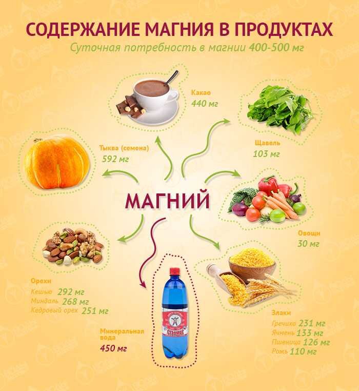 Мы получаем магний с пищей, питьевой водой и лечебной минеральной водой богатой магнием.