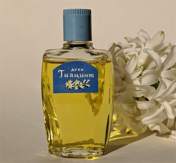 Советские парфюмеры любили включать ноту гиацинта в свои произведения, но солифлоры с запахом этого цветка делали редко: слишком уж он яркий, почти агрессивный. Одним из таких редких чисто гиацинтовых ароматов был "Гиацинт " Северного сияния, созданный в конце 1950-х. Это духи про тяжелые, плотные грозди с мясистыми, глянцево-гладкими цветками. Во флаконе прячется не одинокая веточка, а бескрайние ряды ярких гиацинтов в огромной промышленной оранжерее с влажным воздухом, жирной черной землей и пронзительно-голубым весенним небом над стеклянной крышей. Прохладный, сладкий и плотный аромат. Пирамида "Гиацинта":