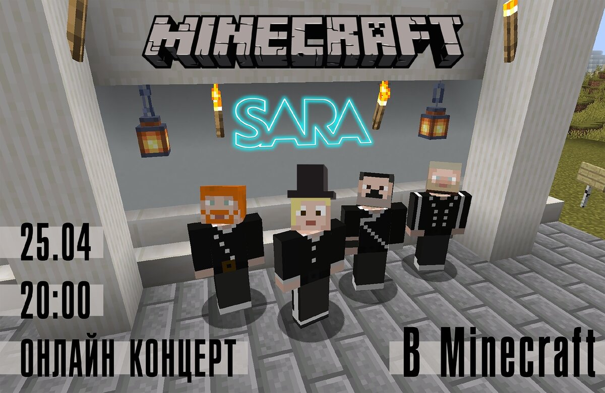 Рок-группа SARA проведёт свой концерт в игре Minecraft. Для этого они воссоздали в игре концертную площадку из своего родного города Екатиренбурга. Об этом ребята написали у себя в оффициальной странице во “Вконтакте”. Вот как выглядит построенная ими сцена Teleclub: Концерт пройдет в субботу 25 апреля. Также участники группы вышлют всем желающим адрес сервера, где находится клуб и пройдет выступление. К сожалению, из-за особенностей игры Minecraft, звук будет доступен только в трасляции во “Вконтакте”, а не в самой игре.