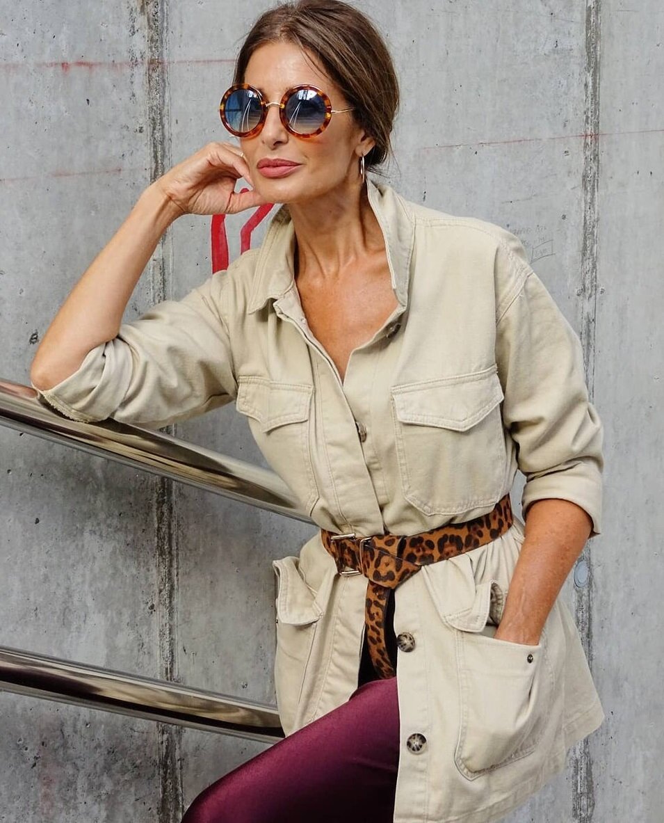 Сафари — это актуальная классика, которая сейчас на пике популярности. Стиль "африканских прерий" привлекает практичностью и элегантностью, а натуральные дышащие материалы, нейтральная природная палитра, звериные принты и массивные украшения делают образы комфортными и стильными. Образы в стиле “сафари” подойдут не только для отдыха и путешествий, но и для офиса, кафе, прогулок с друзьями и создания casual-луков. Модное направление довольно универсально, поэтому отлично гармонирует с другими стилями: этническим, милитари, спортивным и прочими. Если вы ищете идеи для практичных и привлекательных образов для женщин старше 40 лет, то предлагаю обратить внимание на эту статью со стильными сафари-вещами: платьями, брюками, шортами и юбками. 1. Сафари-образы с платьем на каждый день. Чем старше становится женщина, тем элегантней её наряды. Короткие платья уступают место роскошным платьям "миди" и "макси", прозрачные и синтетические материалы уходят на второй план, а натуральные ткани,