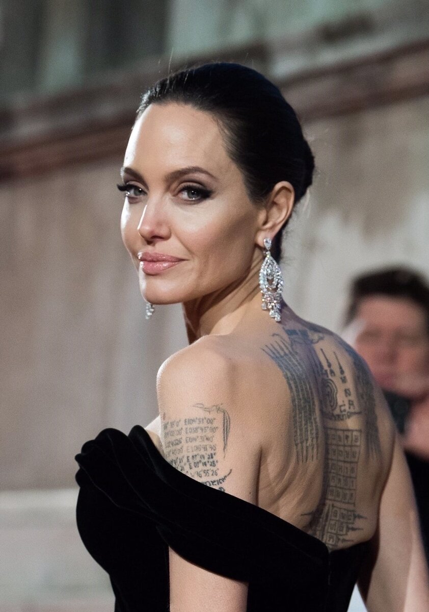 2. Буква «Н» на левом запястье была выгравирована, когда она была помолвлена с Тимоти Хьюттоном, но сама Анджелина утверждает, что сделала эту татуировку в честь своего родного брата Джеймса Хейвена.