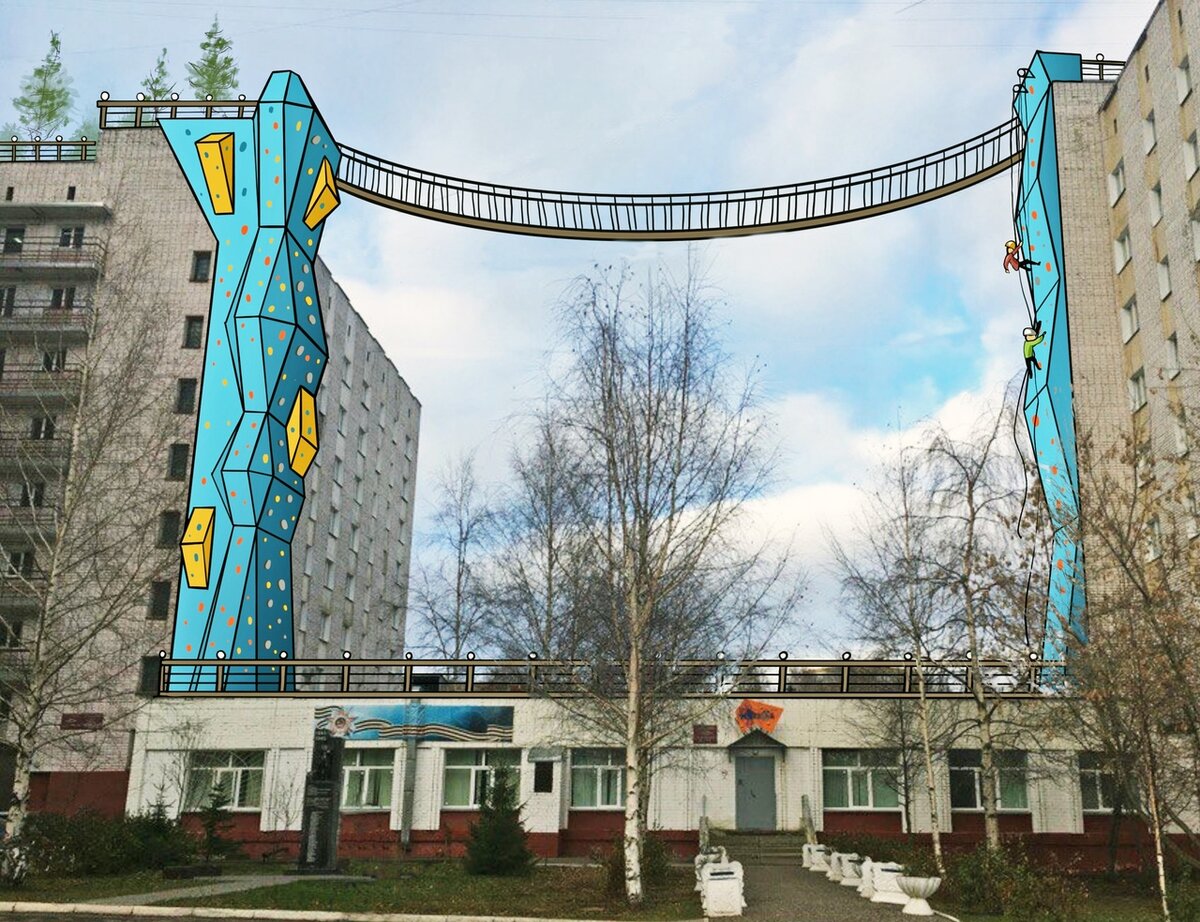 Конструкция может связать два общежития опорного университета и стать частью многоэтажного скалодрома Необычная инициатива появилась у студентов ВятГУ. Группа ребят работает над возможностью появления многометрового скалодрома. Конструкция может появиться на стенах двух корпусов общежитий вуза по адресу: Ломоносова, 16. В сети появились картинки того, как может выглядеть новый спортивный объект. Для занятий планируется использовать глухие стены в торцах зданий. А завершит скалодром может подвесной мост, соединяющий крыши корпусов и части спортобъекта одновременно. Утверждается, что пока волонтеры и студенты только начали работать над идеей. По их подсчетам стоимость конструкции может составить от 10 до 15 миллионов рублей. Конкретных сроков также пока не называется. Ребята планируют проработать техническую сторону проекта. Например, нагрузку на существующие стены и перекрытия. Комментариев от официальных лиц пока нет. Однако ВятГУ известен своими неожиданными проектами по трансфо