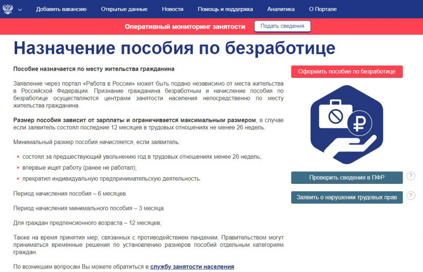 Распространение коронавирусной инфекции привело к тому, что многие теряют работу: компании сокращают и увольняют сотрудников, работать удалённо в условиях массовой самоизоляции соглашаются не многие, а уйти в очередной неоплачиваемый отпуск – это потеря финансовых средств на неопределённый период. Найти новую работу в условиях, когда контакт с людьми должен быть максимально ограничен, кажется чем-то фантастическим, поэтому одной из мер государственной поддержки стала общероссийская база вакансий «Работа в России» и введение пособия по безработице.
