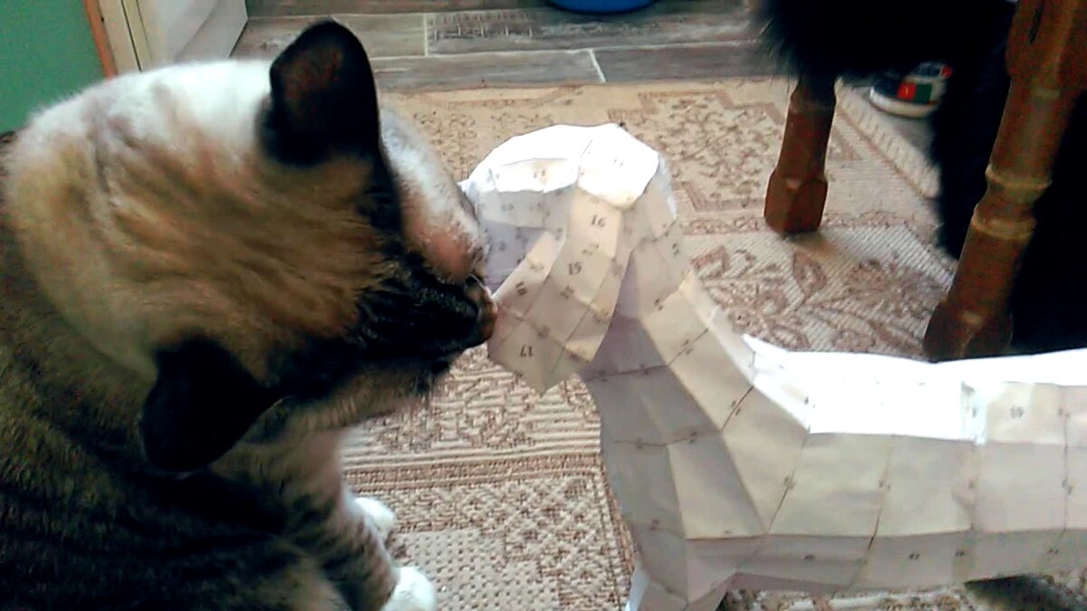 Здесь: Карта канала (по месяцам и типам публикаций) Жена склеила очередного бумажного пса. Выставила котам Чернухе и Беляшику для ознакомления. Пёс впечатления на котов не произвел - нормально не пахнет, нормально не лает, да и неустойчив оказался. ------------------------------------------------------------------------------------- -------------------------------------------------------------------------------------
