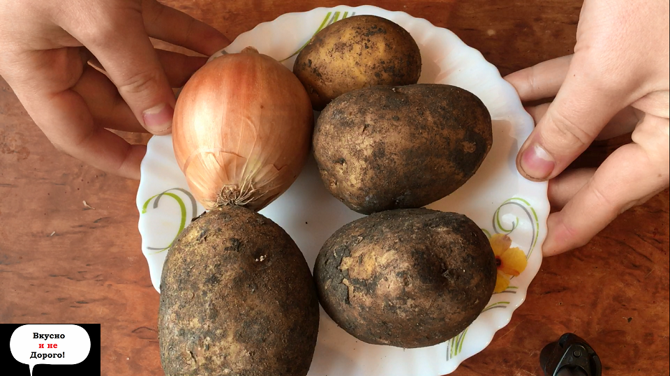 Беру обычный картофель, лук (еще несколько ингредиентов) и готовлю очень вкусное блюдо на ужин