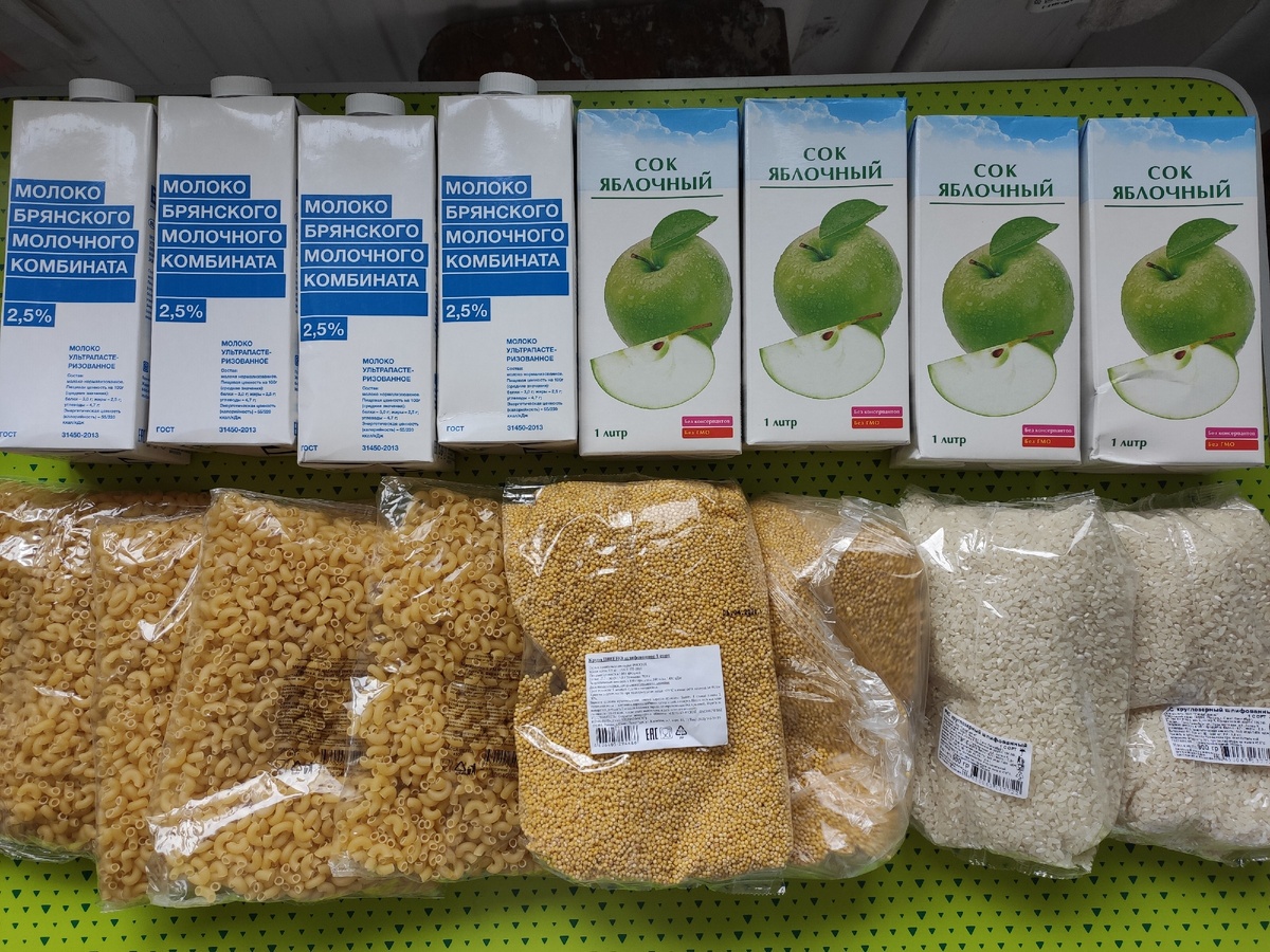 Дождались паек от государства за целый месяц самоизоляции. В этот раз предложили готовить завтраки и обеды ребенку из следующих продуктов: -Крупа. Много. То есть пшена много - 2 килограмма, ну и риса столько же. -Рожки-макарошки 4 упаковки по 400 грам. Вроде как высший сорт, но безымянные, так что о качестве пока говорить рано, нужно попробовать сварить - вдруг съедобные. -Молоко 4 литра. -Сок яблочный - 4 литра. -Выдали и бутылочку рафинированного растительного масла. -Отдельное спасибо государству за зеленый горошек. В дружественном саду выдали по 5 банок кукурузы - не представляю куда бы мы ее девали, так как дома ее никто не ест. -Белковую составляющую обедов закрыли селедкой. Итого четыре консервные банки рыбы в масле. На сладкое: -Банка клубничного джема - очень даже приличный джем оказался-густой и ароматный. Удивили! -2 килограмма сахара -набор "шоколадок" - ну назовем их кондитерскими изделиями с запахом шоколада. -и какой-то чай "Крепкий" Садик опять все организовал на "о