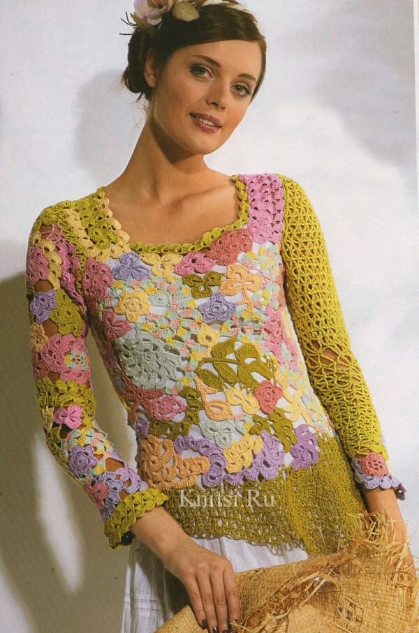 Различные природные мотивы активно используются вязальщицами в создании своих удивительных работ. Пледы и шали, кардиганы и кофточки рукодельницы с удовольствием выполняют из россыпи мелких и крупных цветов и листьев. Все эти компоненты переходят друг в друга абсолютно причудливым образом и создаётся оригинальная и непохожая на другие эксклюзивная вещь. На этом "холсте" есть, где