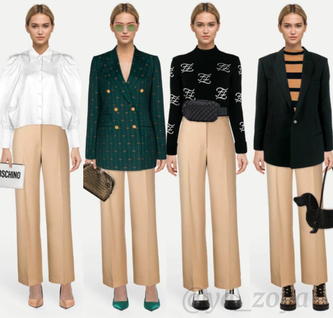 Один из популярных вопросов, который часто задают стилистам их клиенты при разборе или формировании гардероба. Чего в шкафу должно быть больше - верхов или низов? Неправильный ответ, который поначалу напрашивается сам собой - 50/50, поровну. Однако если копнуть глубже и посмотреть наглядно, становится ясно, что перевес идет всё же в сторону верхов. Почему? Давайте посмотрим на примерах. 🔶 Для начала соберем несколько образов по принципу "одни брюки + разный верх". Специально не будем добавлять в них сложные аксессуары, так будет нагляднее. Посмотрите, насколько сильно меняется впечатление от образа, если использовать с одними и теми же брюками разные жакеты, рубашки, блузки: Несмотря на то, что низ одинаковый, из-за разных верхов образы воспринимаются по-разному. 🔶 А теперь сделаем наоборот. Оставим везде одинаковый верх, а брюки поменяем на разные: Как видите, впечатление от этих образов почти не поменялось. Они выглядят одинаковыми. Почему так происходит? 🔶 Потому что, глядя на ч