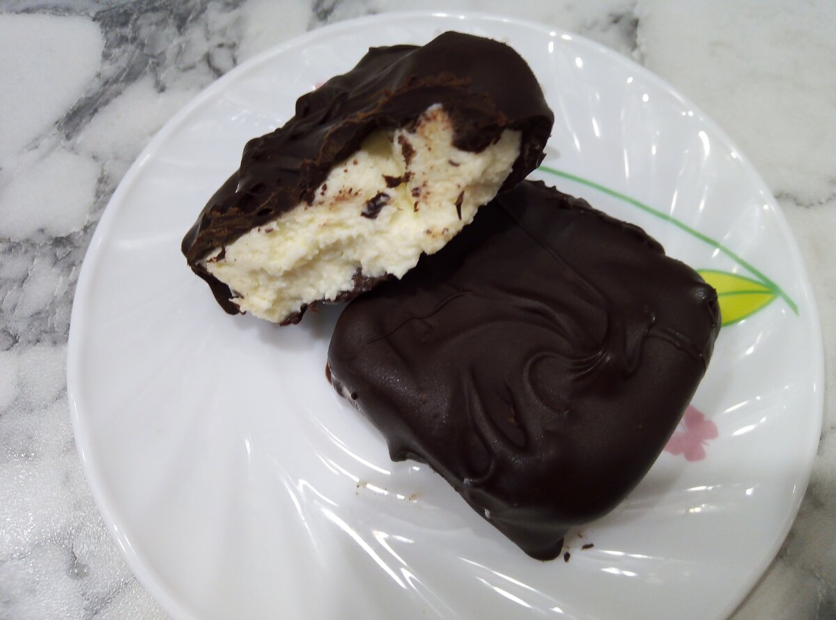 Продукты: Творог – 1 кг Масло сливочное – 200 гр Сахар – 1 стакан Шоколад Процесс приготовления: Творог, масло и сахар перемешиваем блендером до однородной массы. Формируем любые на ваш взгляд и вкус любые формочки и отправляем их в морозилку на 30 минут. В это время подготавливаем шоколад. Сейчас я работаю с шоколадом используя галеты. Но об этом немного попозже) А раньше я просто брала шоколадную плитку и растапливала в микроволновке или на водяной бане. Делаем как кому удобно, комфортно, а главное без особых моральных затрат, ведь вкусно получается от того что мы готовим с удовольствием и для любимых) Достаем наши немного подмороженные твороженные сырочки, обливаем их растопленным шоколадом, и убираем опять в морозилку на 15 минут. Твороженные сырочки в шоколаде готовы. Хранить в холодильнике. А лучше не хранить а быстренько все съесть, ведь это так вкусно…..)) Приятного аппетита!