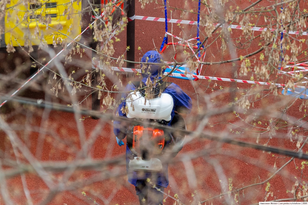 Пока сидим дома наблюдаем много интересного из окна. Дезинфекция детских площадок. Раствор носят в бутылках из под питьевой воды. Народ гуляет. Не в таких конечно количествах как до карантина. Да и периодически гоняют. Подписывайтесь, ставьте лайки, оставляйте комментарии. Репосты приветствуются. P.S. если вы живёте в Москве и хотите фотографий - обращайтесь. P.S.S. если хотите детских фотографий с прогулки и вы живёте в Москве - обращайтесь.