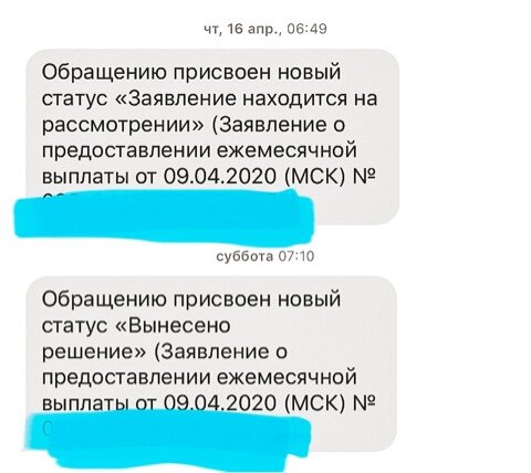 Напомню, что 25 марта В.В. Путин в своем обращении из-за пандемии коронавируса COVID-19 предложил поддержать семьи с детьми до 3‐х лет и выплачивать по 5 тыс. на каждого ребенка в течение 3 месяцев. Заявку на эти выплаты оформляла 9 апреля через личный кабинет на сайте ПФР в разделе мат капитала. Толи большой наплыв пользователей, толи специально система ошибку выдавала, но удалось все оформить только со второго раза. И то, часа 1,5 промучилась. Очень уж долго система загружалась. Первый раз вообще выкинула, когда я стала данные второго ребенка заносить. Пришлось все по-новой делать. И вот ровно через неделю, приходит смс, что заявка находится на рассмотрении. В субботу 18 числа. Пришел положительный ответ. И в понедельник 20 апреля денежки прилетели мне на карту. То есть с момента подачи заявки до зачисления денежных средств прошло 11 дней. Считаю, что очень оперативно. Это не заявленные 5 дней конечно, но и не 25. Хотя общалась с подругами, которые подавали заявку позднее на пару дне