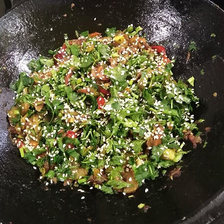 А в конце добавила много зелени (у меня петрушка и кинза). И все посыпала кунжутом.