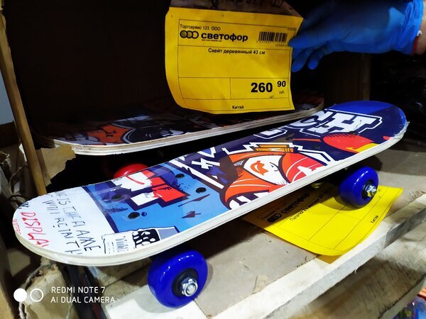 Честно скажу,в магазине "Светофор" в последнее время очень много покупателей.Возможно из-за окна времени,которое нам дал Губернатор Кубани с 10 до 16 часов, многие пытаются затариться продуктами.Но работают все четыре кассы и они не успевают.Хвост тянется на десятки метров.А в этом обзоре я хочу показать вам, какие новшества появились на полках "Светофора" в отделе для дома и быта.О продуктах речи тут сегодня не будет.И на верхней фотографии вы видите скейт детский длиною 43 см по цене 261 рубль. Древесный уголь для мангала весом 2,5 кг.Цена 81 рубль. Палатка двухместная размером 200/150/110 см весом всего 1,4 кг.Цена 828 рублей. Панель ПВХ квадратная размером 47/47 см.Цена 38 рублей Сетка от насекомых на магнитах для дверного проёма размером 210/100см.защищает от пыли, тополиного пуха и насекомых.Цена 80 рублей. Скатерть КОЛОРИТ размером 135/180.Цена 127 рублей. Детские кроссовки размеры 33-35.Цена 315 рублей. Женские летне халаты, есть размеры 46-60.Цена 263 рубля. Компрессор автом