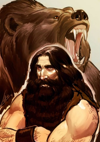 А по пятам за лиходеем пёсья свора. Лай, визг, аж тошно! А уж за псами теми мужики-загонщики бегут. «Ату! Ату его!» — кричат. Догоняют псы медведя того, всей сворой набрасываются, зубами рвут. Да только не страшны они ему — шибко могуч и огромен. Швыряет злобных псов, словно котят слепых, одним махом лапы хребты ломает, нутро взрывает, хватает ловко по одной и о деревья бьет, и оземь, и дух из них вон. А как перевел всю свору, к погонщикам бросился и давай людей губить, словно тех собак, кого пополам переломает, кого в клочья разорвет, кому кишки выпустит, а кому и голову с плеч одним укусом.