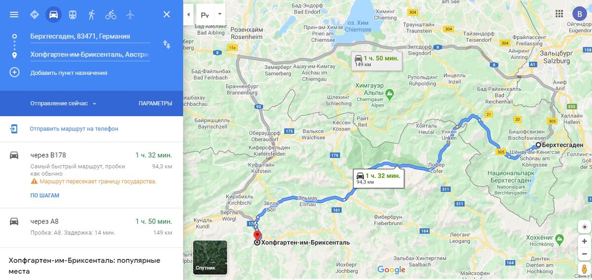 Продолжение второго европейского путешествия на машине в 2018. Начало здесь. Первое автопутешествие в Европу здесь. От Берхтесгадена до Хопфгартена, где была запланирована ночевка, можно добраться двумя путями - короткий по Австрии и практически в полтора раза длинней, но по Германии. Вероятно мне тогда очень хотелось проехать знаменитыми немецкими дорогами, что я выбрал длинный путь. Итак 150 км, почти все по Германии. Немецкие дороги практически ничем не отличаются от австрийских, скорость достаточно высока. Пожалуй, только знаки поменьше как по размеру, так и по количеству. Когда составлял маршрут по картам присмотрел на немецкой дороге A8 на озере Chiemsee стоянку с кафе, выставил метку в навигаторе и поехали к ней - типа на озеро посмотрим, может перекусим чего... Свернули с А8 в маленький городок, потом дорога совсем кончилась, грунтовка между фермами, климат в режим рециркуляции от натуральных запахов навоза за окном, местные мальчишки осваивают трактор в поле и с недоуме