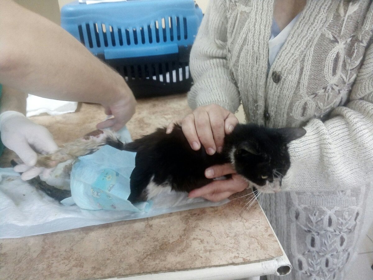 Как мы вчера и говорили, что волонтеры Ольга Х. и Роман повезут котенка из поста: И только сын волонтера не прошел мимо котенка... в вет клинику. Была выполнена просто программа максимум за один только день. Животное свозили сразу в две клиники - в Центр ветеринарной медицины. Ведь именно там всегда делают лучшее обследование т.к. там замечательная лаборатория и оборудование самое продвинутое по Донецку. Был сделан общий анализ крови, результаты которого вы уже можете увидеть выше. Также котика осмотрел Алексей Алексеевич из клиники "4 лапы", он же лечащий ветврач для подновляющего большинства наших животных. Было прописано лечение. Купленные лекарства и лист назначения ниже. - Спасибо огромное! Только зашла домой - клиник,а потом поиски лекарств и памперсов... Сейчас по плану купание, обработка, ножны уколы... - говорит хозяйка приюта "Спасение". - Пока лечение, а там... Может и будит ходить. Очень на это надеюсь. Врач толковый. Ну сейчас нужно много времени терпения и памперсов! -