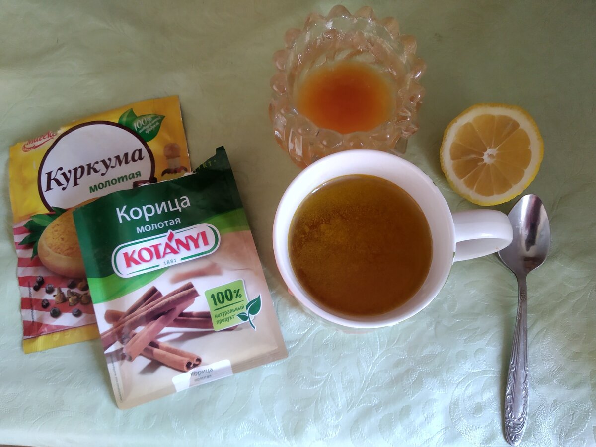 Как и обещал в прошлой своей публикации, скидываю рецептик того, что можно пить утром вместо воды. Многие называют его элексиром жизни, и просто спасением для тех кто хочет похудеть! Для его приготовления нужно лишь 4 простых ингредиента, которые без проблем можно приобрести в любом магазине. Мёд на кончике чайной ложки(Мёд лучше в магазине не покупать, а брать у частников). Куркума (Примерно 1\4 чайной ложки, я лично насыпаю на глаз). Теплая вода (1 стакан) Корица (1 щепотка) По желанию. Лимон (половинка, для начинающих лучше 1\4 часть) Процесс приготовления так же прост. В стакан с тёплой водой добавляем 1\4 чайной ложки куркумы и выжимаем туда же четвёртую часть лимона. Затем добавляем мёд на кончике чайной ложки, и по желанию добавляем корицу. Всё это тщательно перемешиваем, и выпиваем. Пить лучше всего через трубочку, чтобы лимонная кислота не повредила зубную эмаль. И не забывайте, что выпить нужно сразу после перемешивания, чтобы куркума не осела на дно. Немного о полезных с