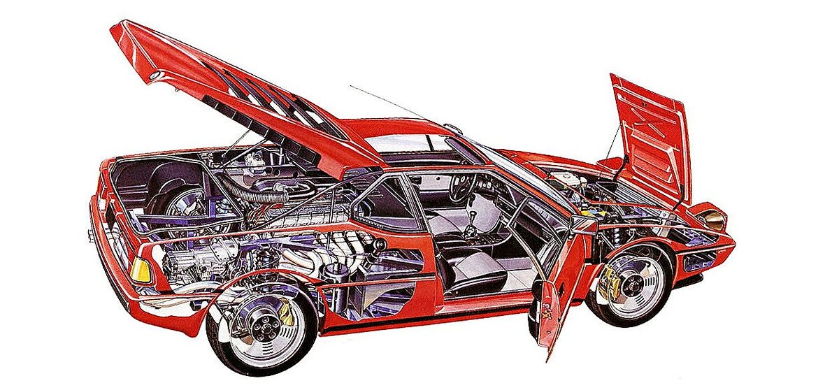 Были установлены массивные алюминиевые диски со звездообразными пазами. Их главная задача- в отводе тепла с тормозного диска. Говоря об электрической части, нельзя не упомянуть об фарах, сделанных скрытыми. При закрытии они идеально повторяли линии капота. Двигатель BMW M1 E26 был оснащен встроенным шестицилиндровым двигателем с механическим впрыском. Поначалу рассматривалась возможность использования 8-цилиндрового или даже 12-цилиндрового двигателя, но ограниченный бюджет сделал свое дело, и линейка из шести M90 вошла в серию (получив внутреннее название M88 после ряда изменений). Этот двигатель выдал 277 л. с. при 6500 об / мин, был оснащен эле