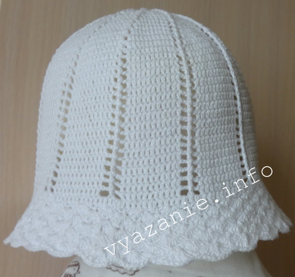 Панамка обязательно нужна ребёнку. В этой панамке девочка отходила всё лето. Вид, как у новой. Носила с удовольствием. Цвет не изменился. Эта панамка для девочки 3 лет. Нам понадобится хлопковая пряжа "Ирис" и крючок №1.25. Описание. В кольцо амигуруми набираем 12 столбиков с одним накидом. Смыкаем в круг соединительным столбиком. 1 ряд. *1 лицевой рельефный столбик с одним накидом, воздушная петля* в каждую петлю предыдущего ряда. 2 ряд. Перейдём одним соединительным столбиком в арку из 1 воздушной петли. 3 воздушные петли подъёма, *1 лицевой рельефный столбик с одним накидом, воздушная петля, 1 столбик с одним накидом в арку предыдущего ряда, воздушная петля* в каждую петлю предыдущего ряда. 3 ряд. 3 воздушные петли подъёма, *1 лицевой рельефный столбик с одним накидом, воздушная петля, 2 столбика с одним накидом в одну петлю предыдущего ряда (прибавка), воздушная петля*. 4 ряд. 3 воздушные петли подъёма, *1 лицевой рельефный столбик с одним накидом, воздушная петля, 2 столбика с о