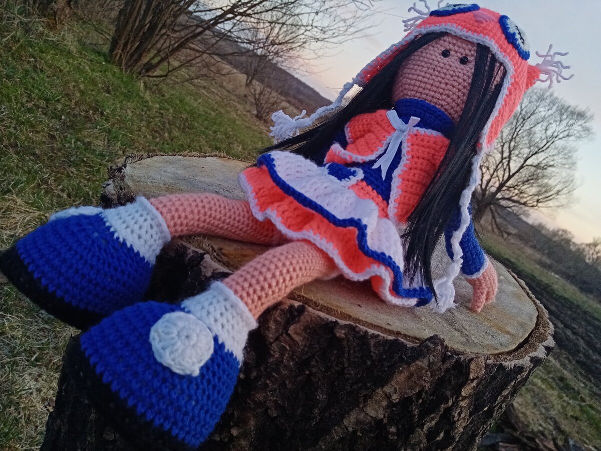 Я увлекаюсь вязанием! Вяжу и крючком и спицами, вяжу все от ковриков до мочалок, но в последнее время меня увлекают игрушки. У меня их много, сначала вязала для души, но к моим игрушкам появился интерес и я решила их еще и продавать. Очень приятно что твое увлечение приносит не только удовольствие, но еще и денежку. Сегодня хочу похвастаться очередным моим творением это куколка Молли. Искала что можно связать в карантин и на просторах интернета, случайно наткнулась, на описание похожей куклы. Сразу скажу, что перевязывала я ее два раза, никак не могла понять как она стоит если в ней нет каркаса и в конце концов решила вставить проволочный каркас. Жду ваших оценок и буду рада помочь если вас заинтересует.