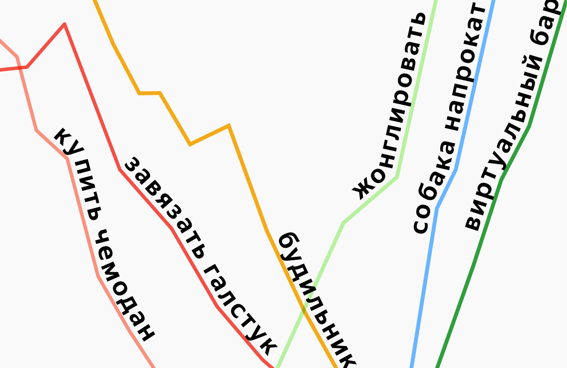 Многие вещи, из которых состояла повседневность, перестали быть актуальны. Например, правильный узел на галстуке и схема метро. Сильно выросло количество запросов, связанных с поиском новых решений бытовых задач и развлечений, доступных дома.