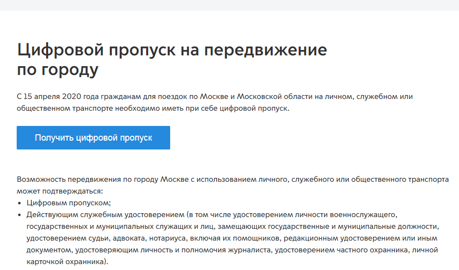 14.40, Москва \Tochka Zрения\ Как это и предполагалась ранее, после тестирования режима цифровых пропусков в Москве, она будет распространена и на остальные регионы РФ. Уже на следующий день, после заявленного властями Москвы введения цифровых пропусков в столице, в магазинах приложений для смартфонов появилось приложение, разработанное Минкомсвязью РФ, для оформления цифровых пропусков. Тогда было заявлено, что это приложение разработано для получения цифровых пропусков в регионах, в то время, как цифровой пропуск в Москве можно было оформить только на сайте мэрии Москвы, а о такой системе в регионах ещё не было и речи. По этому факту и заявлениям стало понятно уже тогда, что система цифровых пропусков будет распространена и на другие регионы РФ, после успешного внедрения и получения такого опыта в столице. Теперь это подтвердилось. Система будет распространена на Регионы РФ. Мэр Москвы Сергей Собянин, который является по совместительству главой оперативного штаба по мониторингу и к