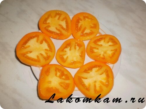 Блюдо из овощей «Помидоры с сыром». Приготовление. Помидоры моем, сушим и нарезаем кружочками толщиной примерно 1 сантиметр.